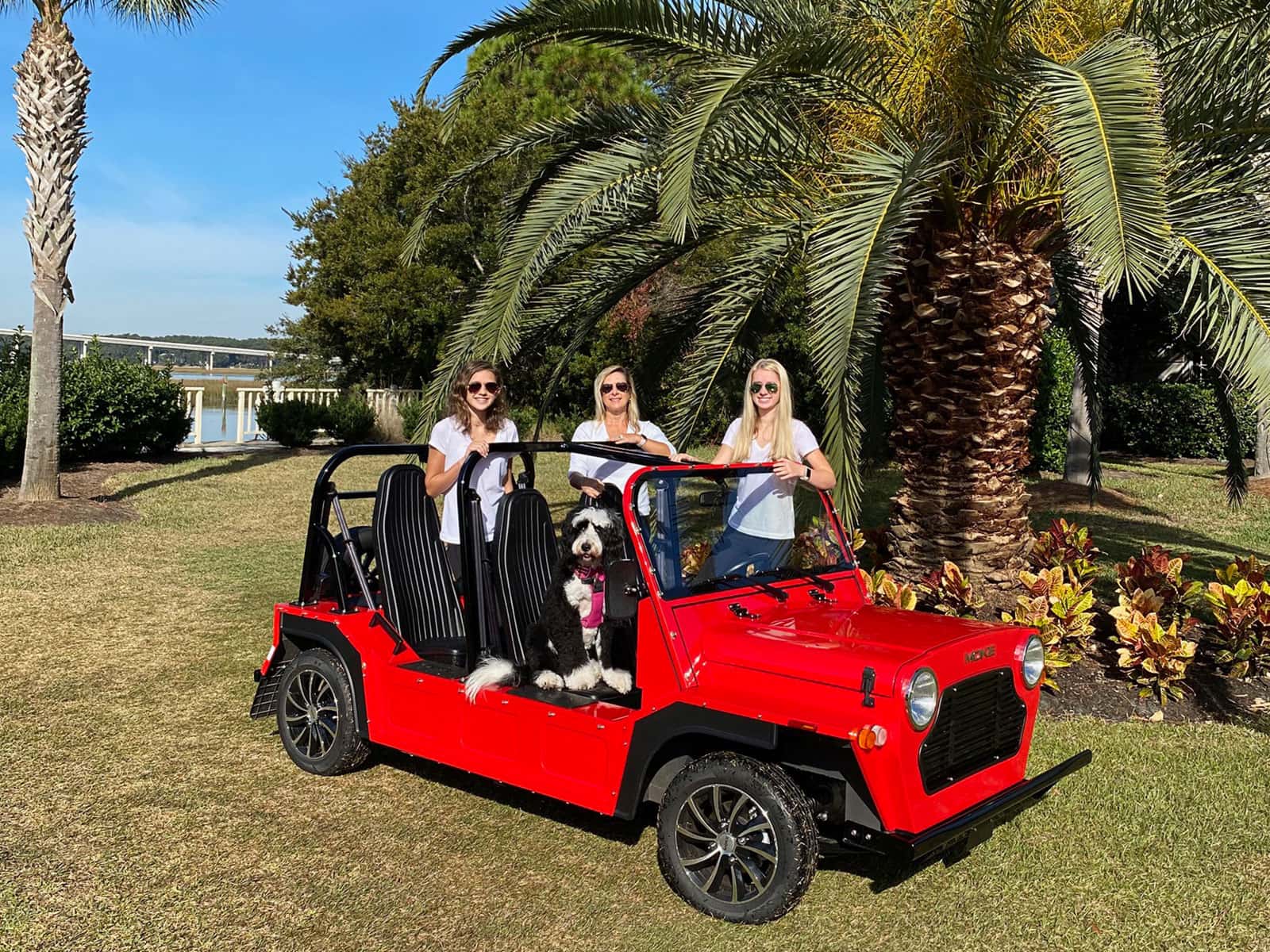 First things first, though. What is a Moke? “It’s a fully customizable, 4-seat electric vehicle with a range of 40 miles,” Jason says, “and it can be charged on a standard household outlet.” And how is it different from a golf cart? “With a longer, wider wheel base and a lower center of gravity, it’s much more comfortable and a lot safer to drive. Plus,” he adds, “everyone is inside the vehicle, facing forward with seat belts.” The other big difference? No oil changes or spark plugs to swap out. “Electric motors are so simple,” says Jason. “I have zero maintenance issues.”